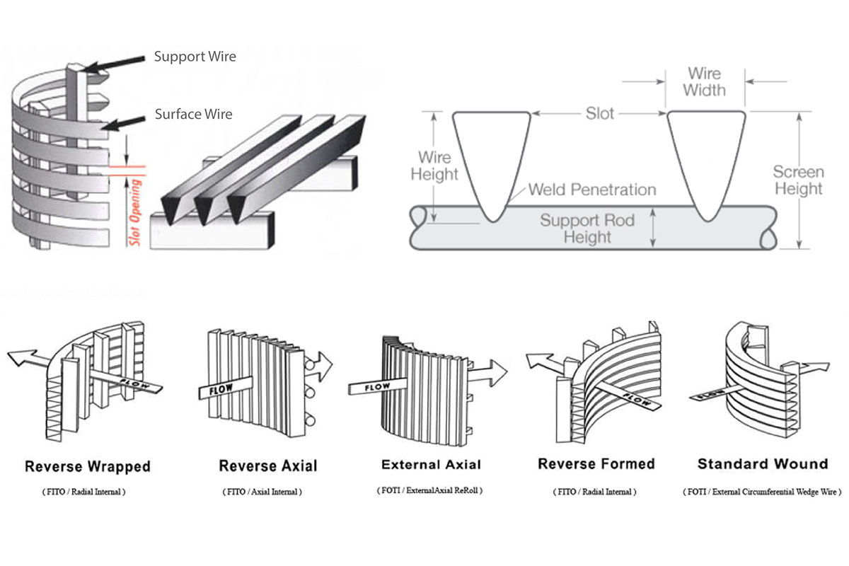Wedge wire screen also called profile wire or V-wire screen, is a type of filtration or screening device made from V-shaped (wedge-shaped) wire that is welded to support rods to create a precise and uniform slot opening. This design creates a continuous slot opening that is highly efficient for filtering, screening, and sizing a variety of materials, allows for high strength, durability, and efficient filtering capabilities.